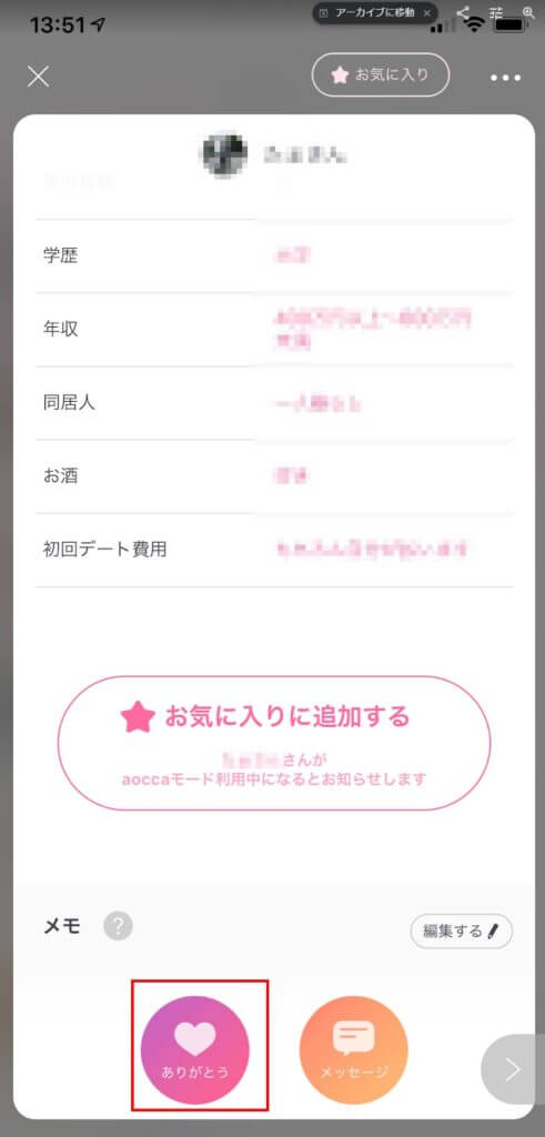 逆に、aoccaモードを設定している女の子に直接メッセージを送ることもできます。