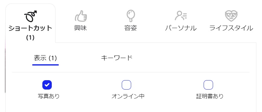 僕はかならず「写真あり」をオンにしていました。 写真がない方はプロフィールなども手抜きな場合が多かったですね。