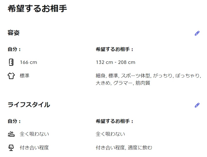 自分の「希望するお相手」をしっかり記入しておくことで、「両想いマッチ」の精度が高くなります。