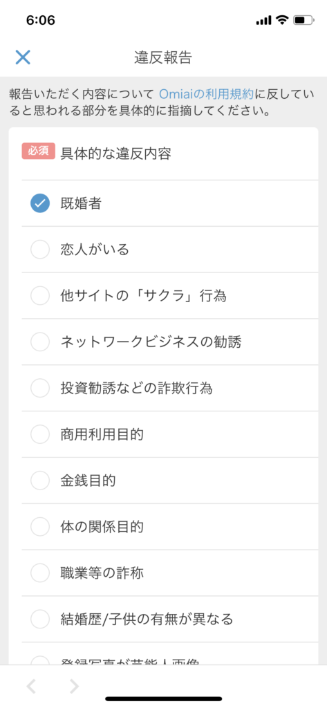 Omiai違反報告