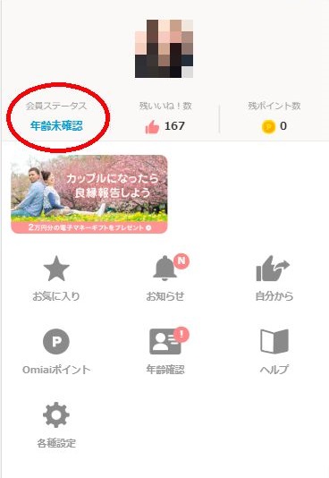 異性のいいね!数は、男性であれば有料会員登録、女性であれば年齢確認すると表示されます。