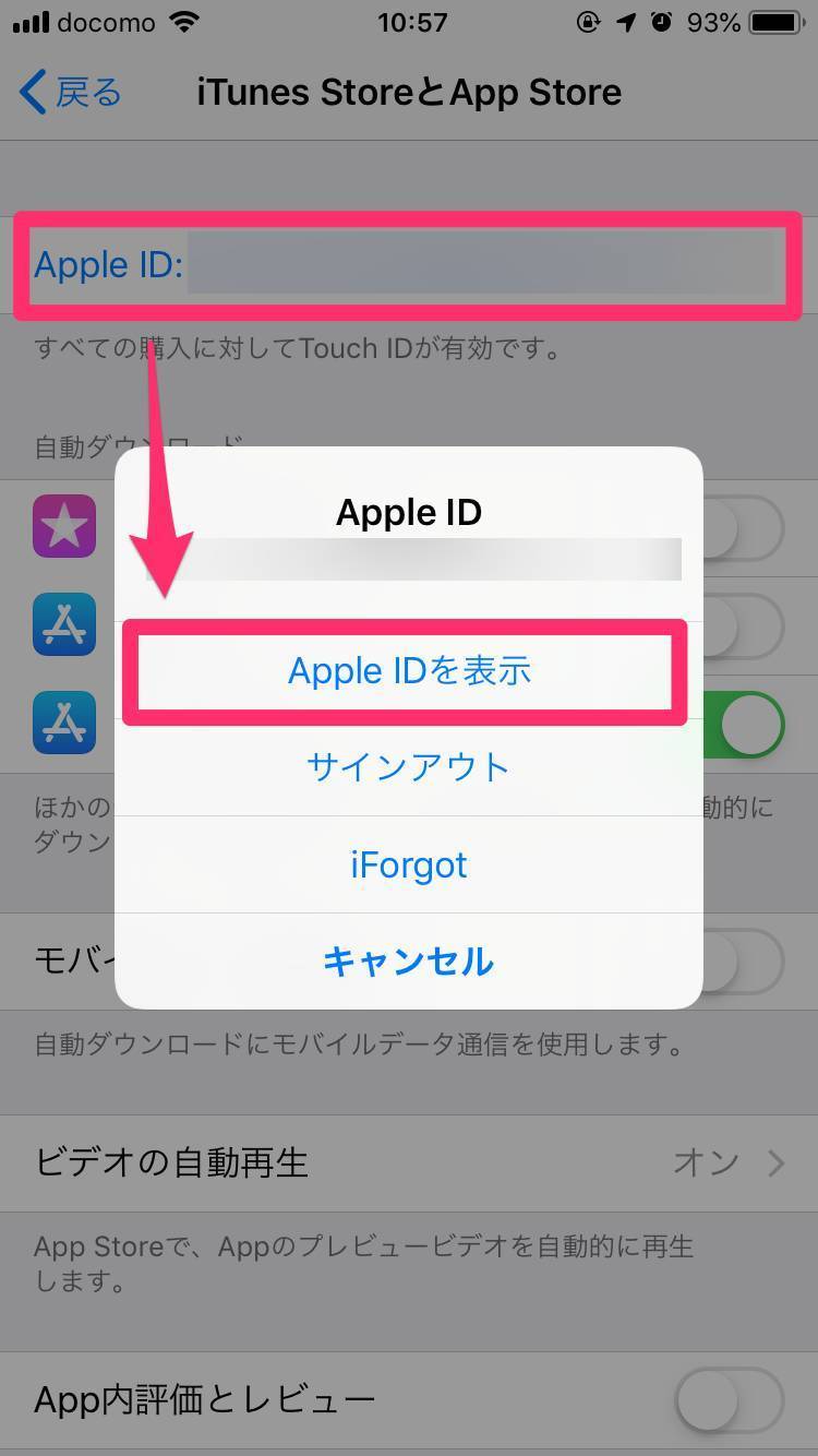 - 自分のApple ID(メールアドレス)を選択して[Apple IDを表示]